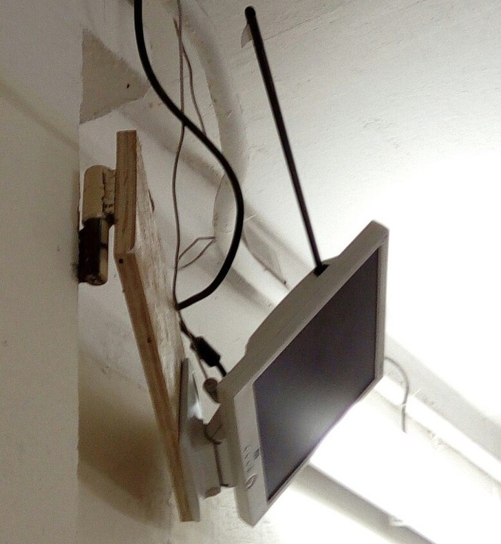 ▼我射了一支箭,剛好插進了這個螢幕的USB插口,而螢幕也還可以使用!