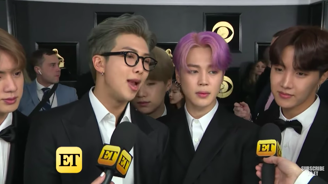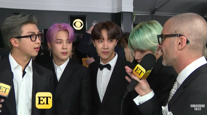 2019年02月13日南韓偶像團體BTS防彈少年團首次登上葛萊美獎(Grammy Awards)的舞台。他們以專輯《Love Yourself 轉 ‘Tear’》入圍最佳專輯包裝獎,雖然最後沒有拿到獎,但仍以頒獎人的身分全程參與。其中BTS在紅毯上接受全英文訪問的畫面引起了網友們的熱議。