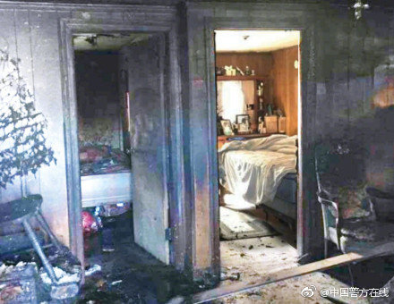 ▼門的兩側對比鮮明。臥室外靠近火源的一側,門被煙燻黑,但臥室門的內側卻基本完好,僅僅門框有一點被燻黑的痕跡。消防局表示:「臥室外發生嚴重火災時,這扇門較好地保護了室內的陳設。」