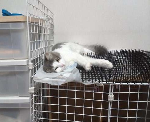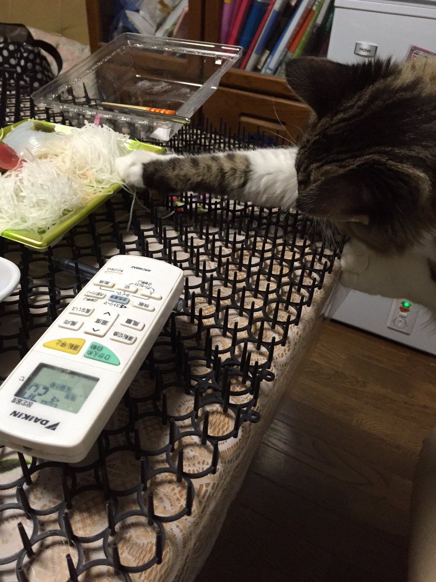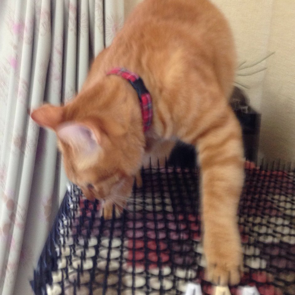 ▼這個東西就是驅貓墊了,日本原文的商品名是「猫よけのトゲトゲ」,墊上有許多軟軟的尖刺,本來是要避免貓踩上去的…
