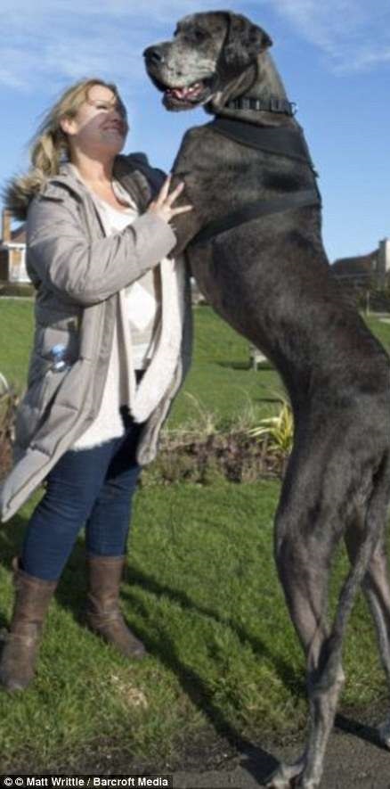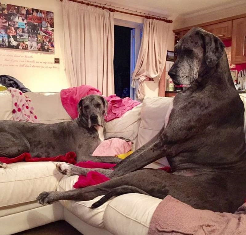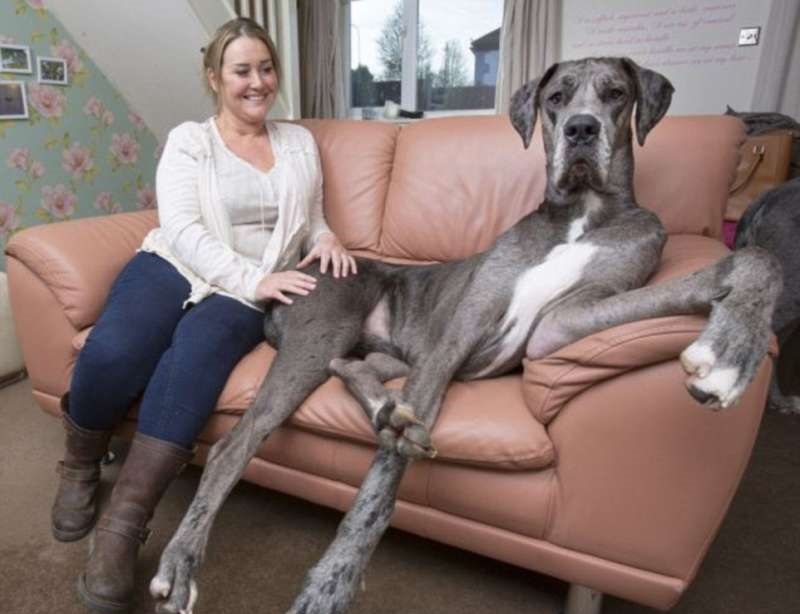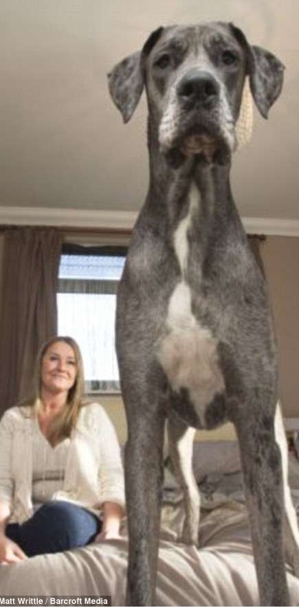 試著想像看看,「世界最大的狗」到底有多大嗎?四歲大的大丹犬Freddy和他的主人Claire Stoneman一起住在英國,而Freddy正是世界最大狗紀錄保持者,站立後的身長甚至高達220公分,體重甚至達到約110公斤。