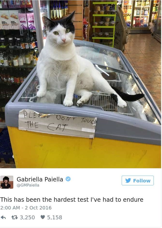 ▼「告示上說不要碰那隻貓,這是我一生中最難克服的試煉。」