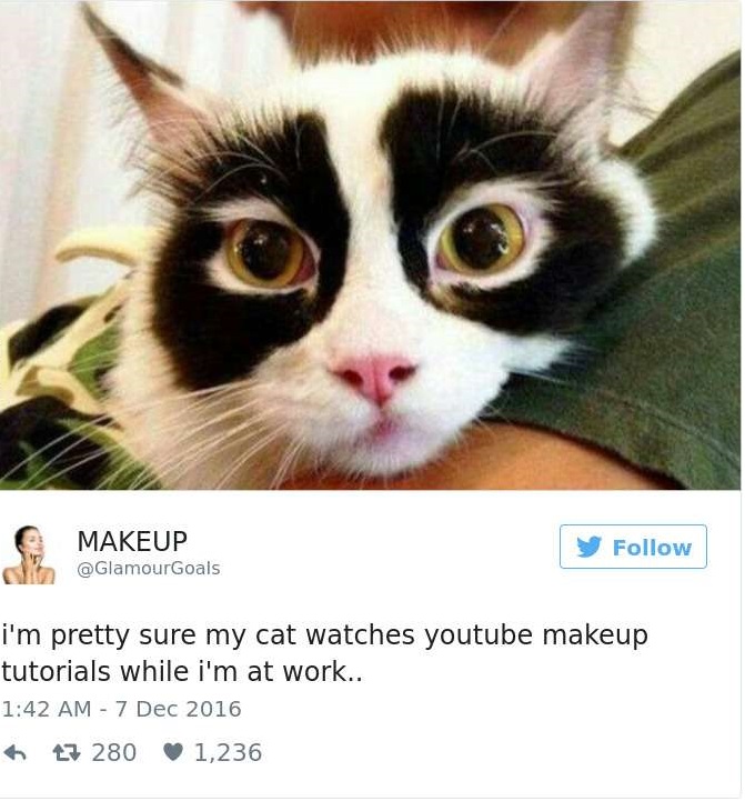 ▼「我工作的時候,我家貓一定看了YouTube上的化妝教學影片。」