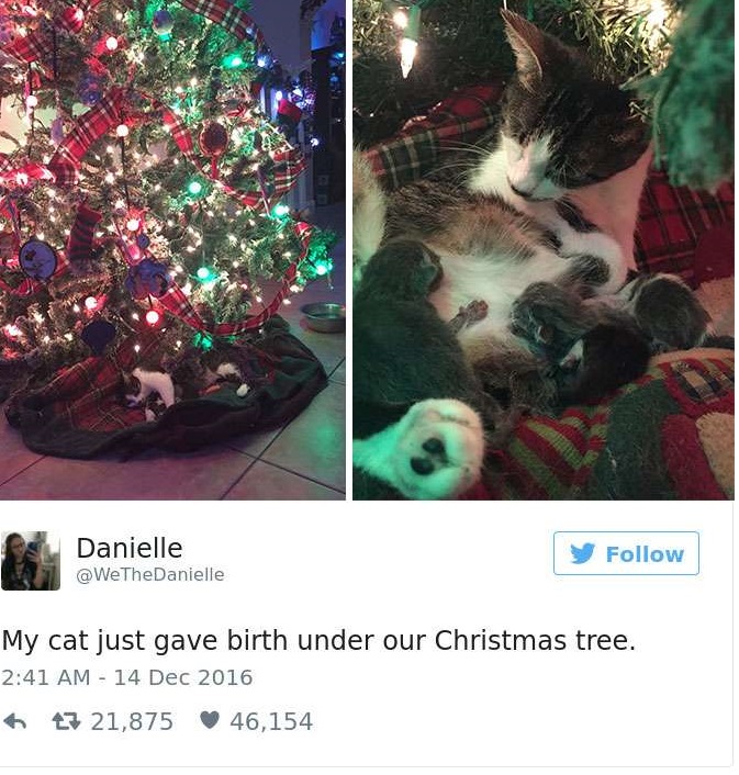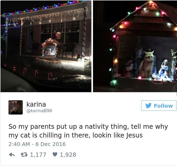 ▼「爸媽放了一個耶穌誕生的擺設,為什麼我家貓在哪裡,看起來就像耶穌一樣。」