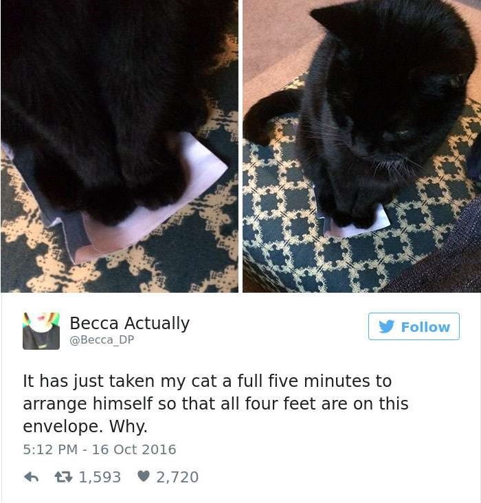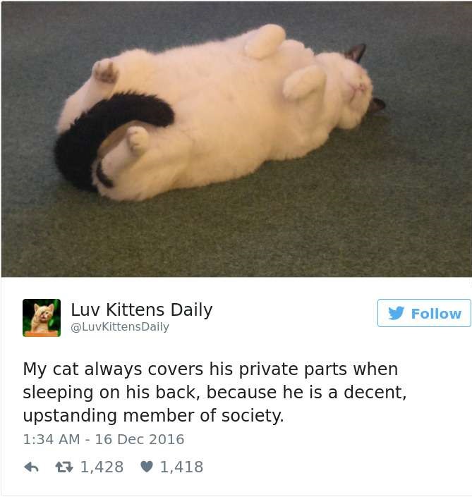▼「我家貓躺下睡覺的時候會用尾巴蓋住隱私部位,因為他是個體面、誠實正直的貓。」