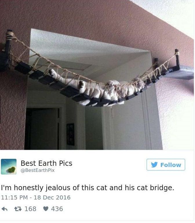 ▼「我嫉妒這隻貓,還有牠的貓橋。」