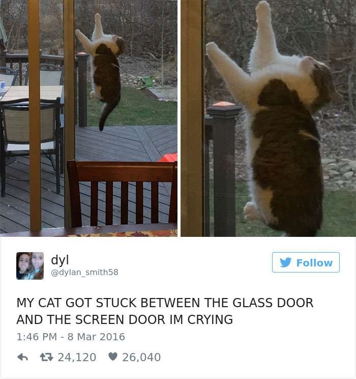 ▼「我家貓卡在玻璃門和屏風門中間了,我要笑哭了。」