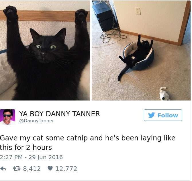 ▼「給了牠一點貓草,牠就用這個姿勢在那裡躺了兩個小時。」