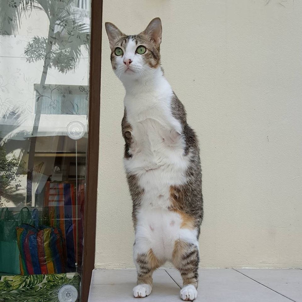不管對人還是動物來說,失去肢體都是一件很痛苦的事。幾年前,泰國曼谷一隻叫做  「Able」的貓咪遭遇事故,不幸失去了兩條前腿。堅強的Able沒有被打垮,而是學會了像暴龍一樣,用兩條後腿走路,現在牠已經成為了全民勵志偶像,大家都很喜歡這隻勇敢的貓咪。