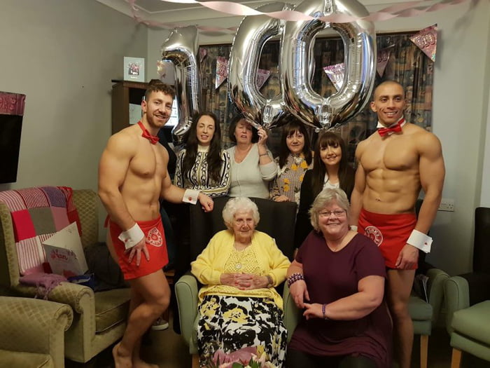 Jenkins對自己的100歲生日非常滿意。除了2名小鮮肉,她的家人和朋友也趕到退休之家,與她一起過生日。Jenkins的臉上一直掛著笑容,她真的很開心啊~