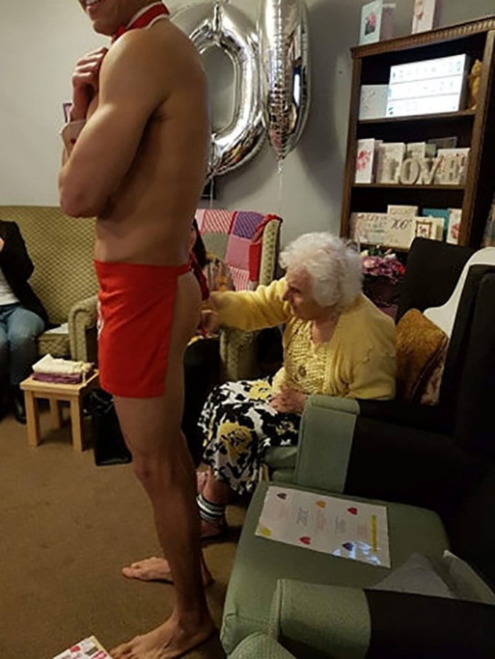 2019年02月19日100歲大壽值得好好慶祝!英國阿嬤Doll Jenkins住在艾塞克斯郡(Essex)的一個退休之家中。她的100歲生日就要到了,工作人員決定邀請2名小鮮肉前來,當作送給她的禮物。這份禮物讓阿嬤很驚喜,她玩得超開心,分別時還不停問:「什麼時候能再見到他們?」