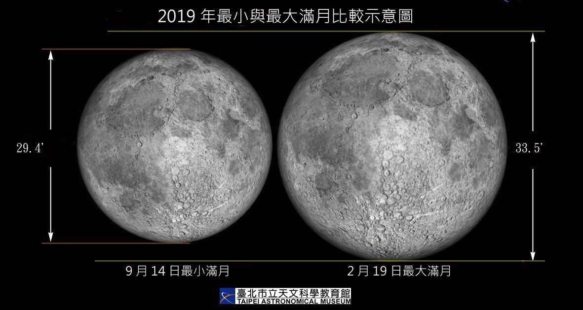 ▼今年元宵節晚上11點54分的滿月,可說是本年度12次滿月中最大的!對比今年9月14日最小的滿月,直徑大了約13.8%,由於月球公轉軌跡,不是每年元宵都能遇上月亮極度靠近,這次可說是119年來最大的元宵節滿月啊~