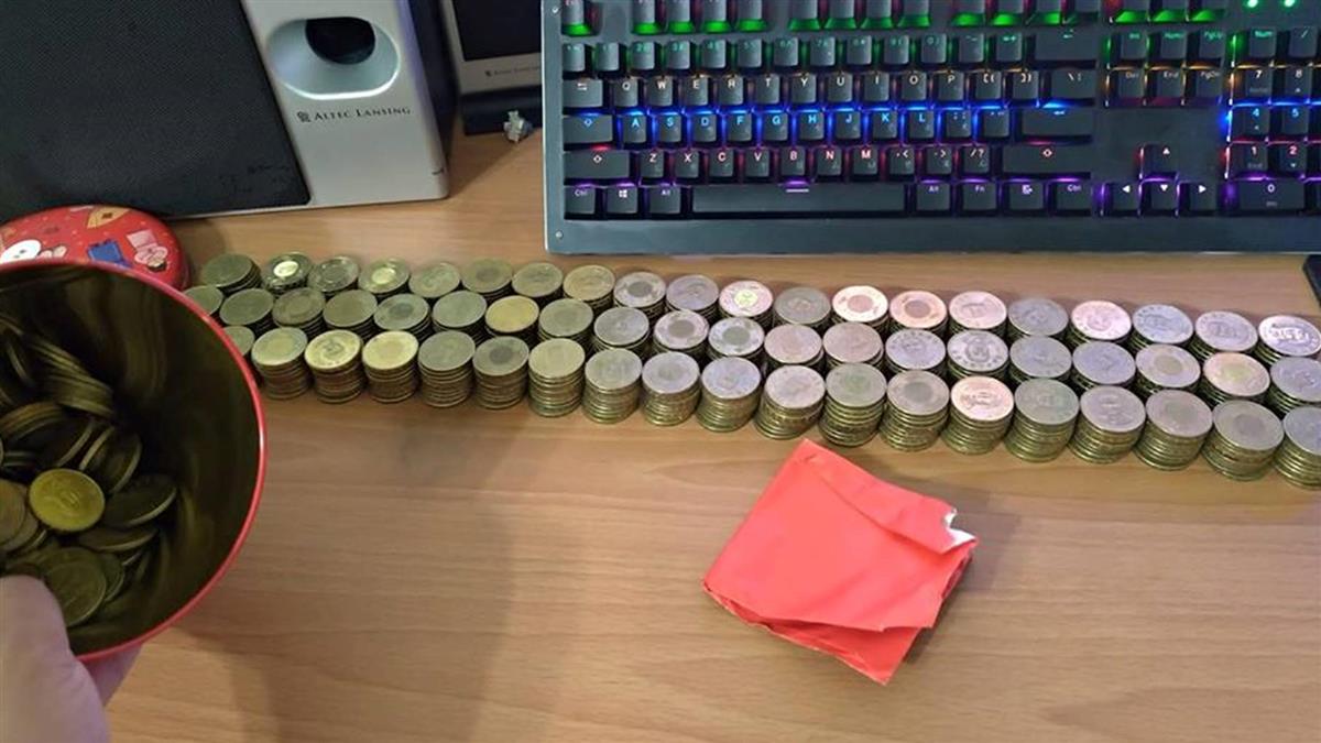 ▼一段日子後,他丟下丟下竟然就存了很多桶的硬幣,還笑說:「下個月帶老婆出國玩就靠這桶了!」