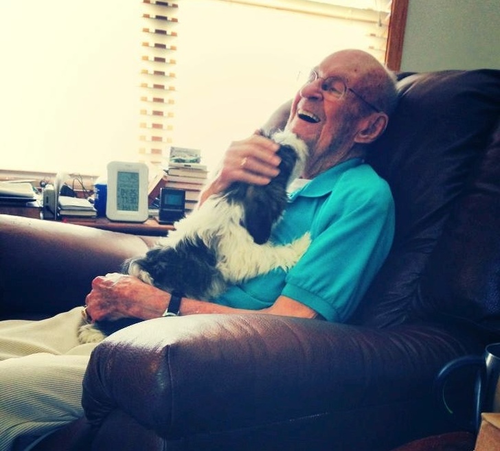 ▼81歲的媽媽與狗狗相處得非常愉快。