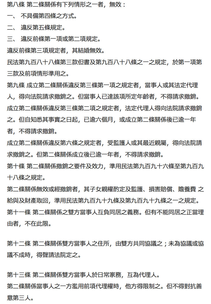 ▼從政院版同婚草案可以看到,同性伴侶準用《民法》婚姻章規定結婚。