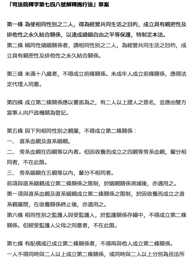 ▼「司法院釋字第七四八號解釋施行法」草案完整內容