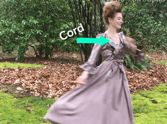 ▼一開始是一件很樸素的長裙,當她在旋轉的過程中拉開肩繩,背後的絲帶也會自然解開。