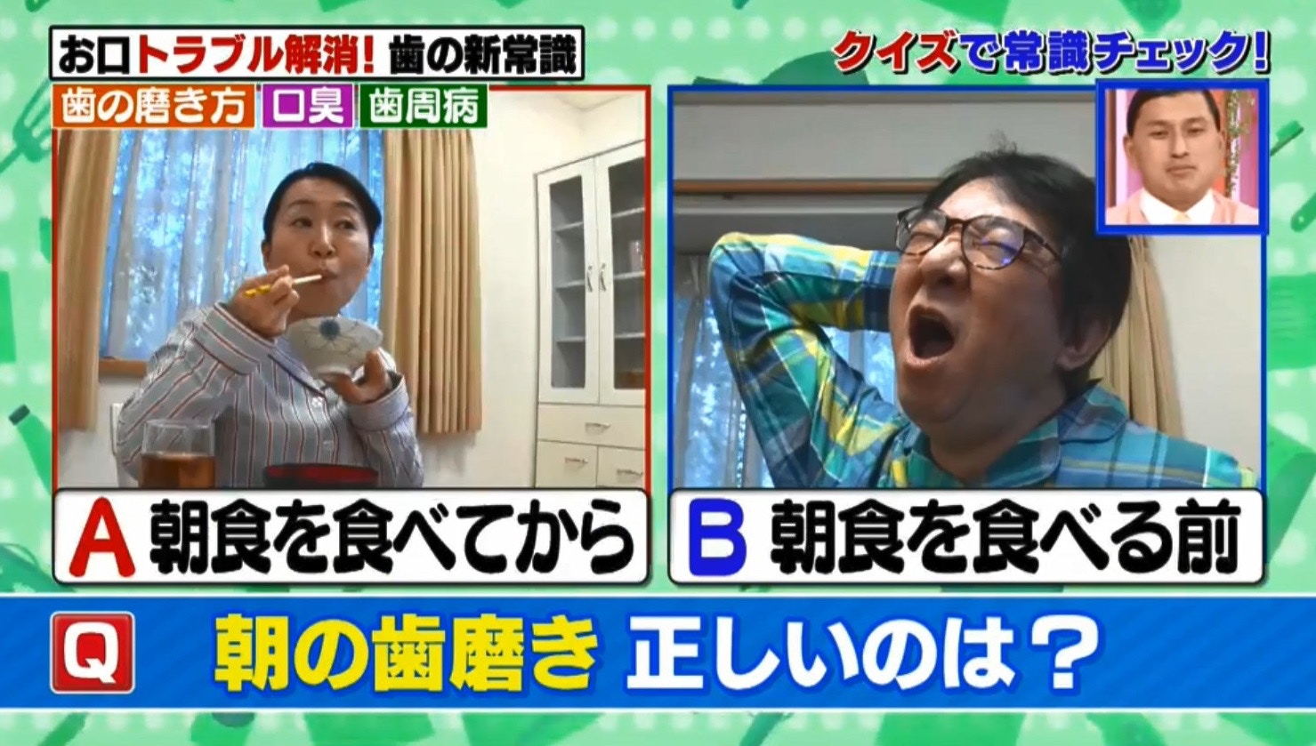▼問題一:大家都是早餐後才刷牙,還是早餐之前刷牙呢?