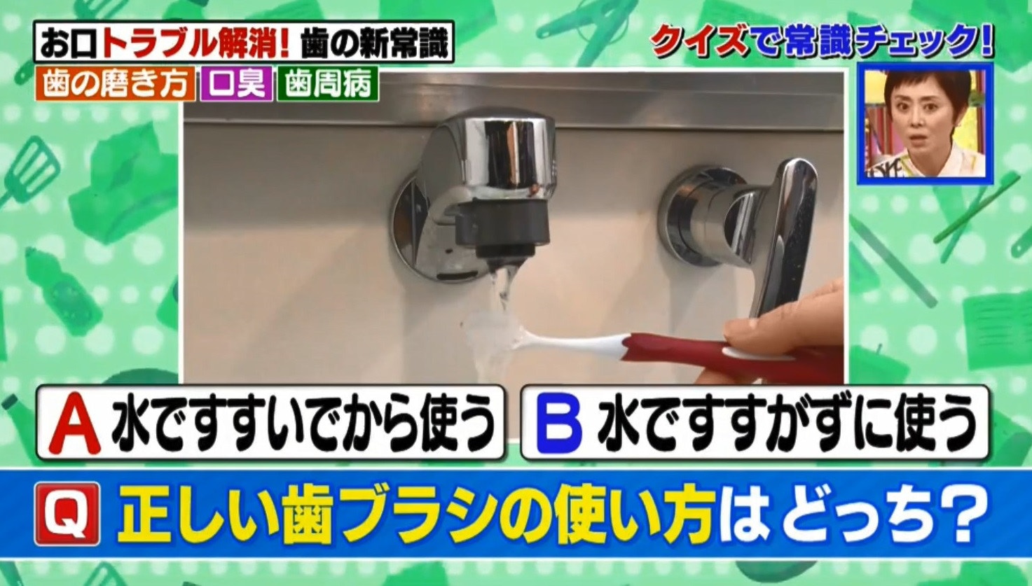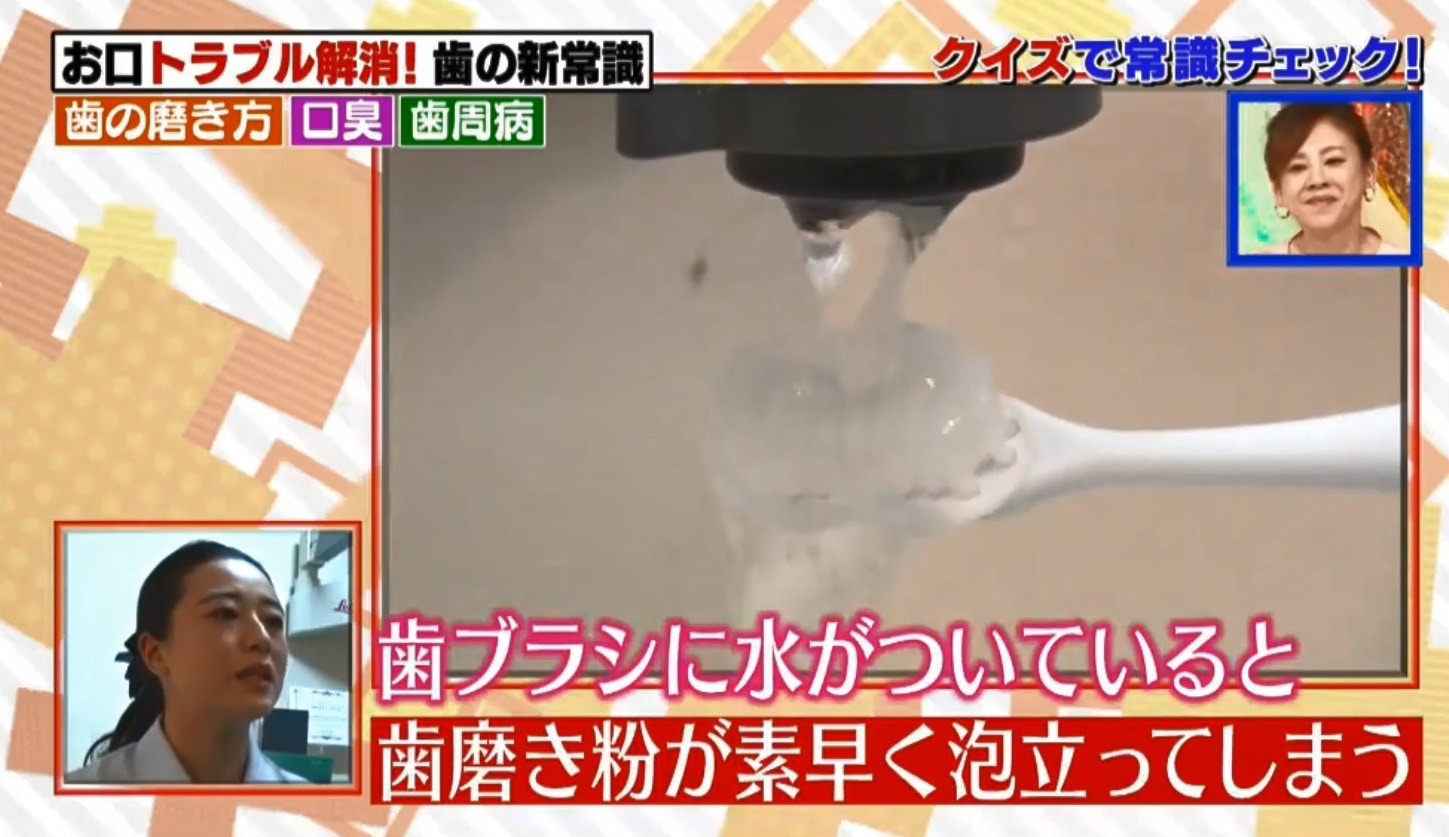 ▼問題二:很多人在刷牙之前都會將牙刷沾濕,這是正確的嗎?