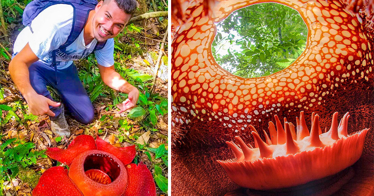 ▼3.阿諾爾特大花草(霸王花、大王花):這是世界上最大的花,花的直徑長達一公尺,氣味惡臭難聞。它沒有根、葉和莖,靠底部的絲狀纖維物長在野生蔓藤上,並吸取養分。原生地為印度尼西亞蘇門達臘島南端與婆羅洲。