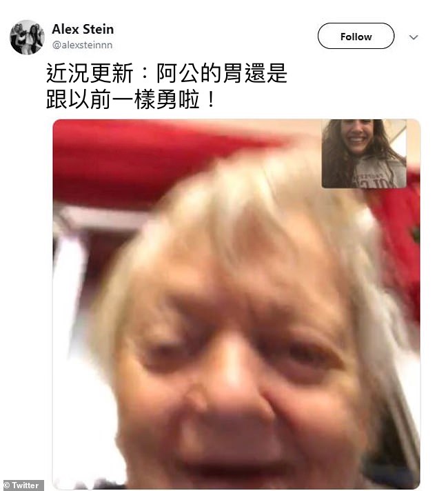 ▼隨後,Alex更新了一張她與爺爺視訊聊天的照片,說明爺爺的身體沒事,而且不在意被大家笑,反而很享受當網紅。