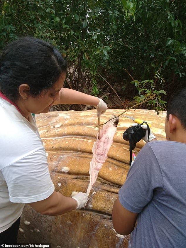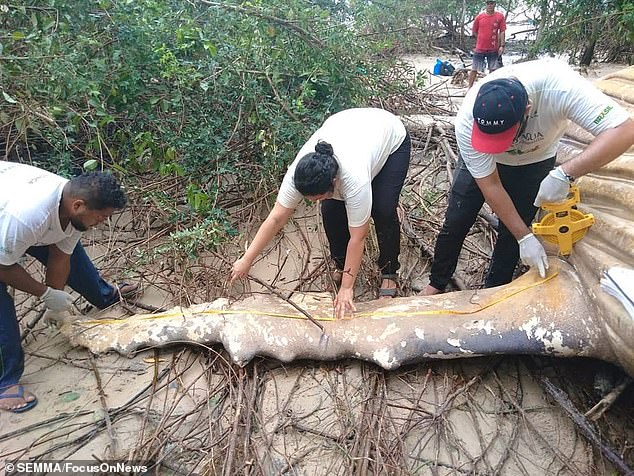 ▼當地衛生部門官員表示,動保團體「Bicho D’Água」的一些成員發現一大群禿鷹在馬拉若島上空盤旋,為了解開謎團,他們克服重重困難,這才找到了這隻座頭鯨。