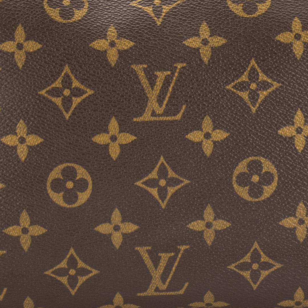 ▼這款鉛筆包外印的是以四瓣花與LV縮寫組合的原花紋「Monogram」,該花紋也使得LV成為我們耳熟能詳的經典名牌。