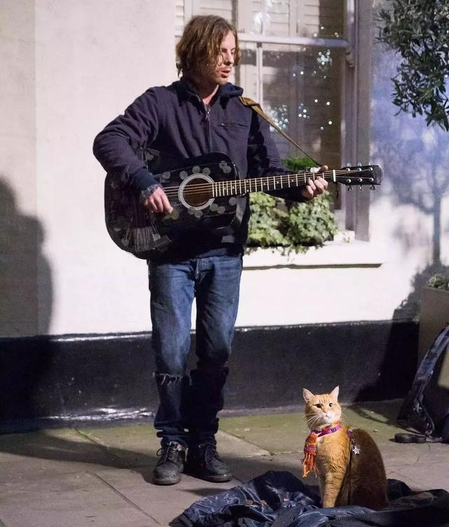 ▼詹姆士開始帶著鮑勃去街頭表演,有別於以前的受冷落,在鮑勃的加持下,詹姆士儼然成為了街頭藝人中的明星!許多女生都被可愛的鮑勃吸引,前來要求合照,就連收入也是以前的好幾倍!