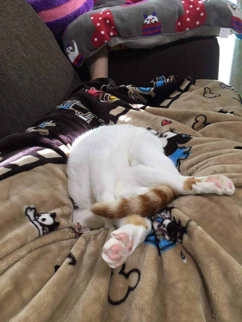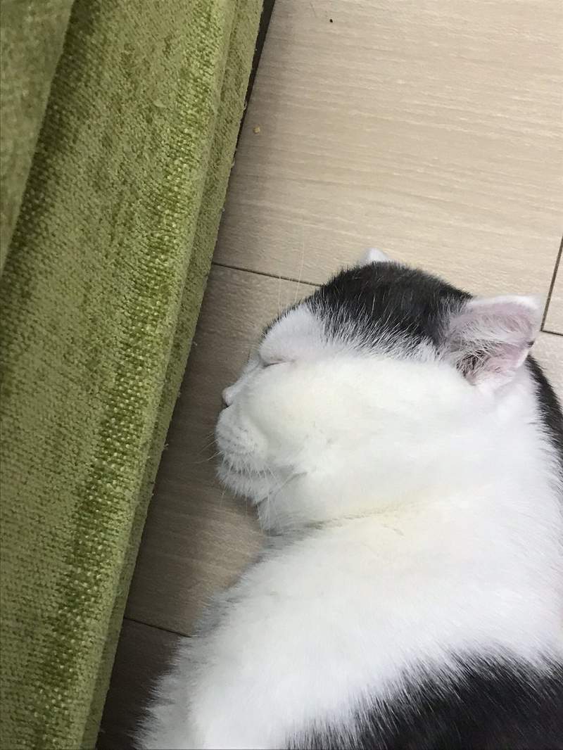 ▼眼睛太大的貓咪,睡覺時會像這樣翻白眼,看起來真的很像玩壞了一樣。