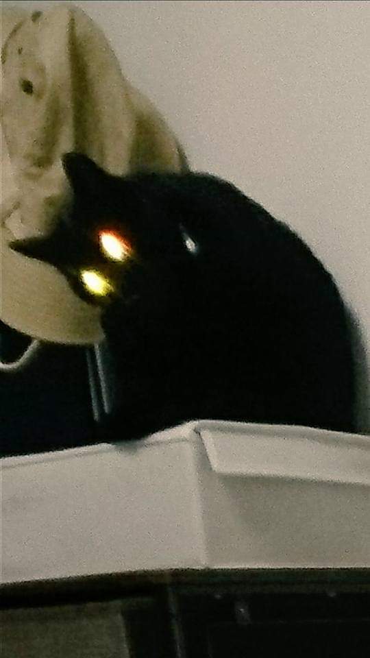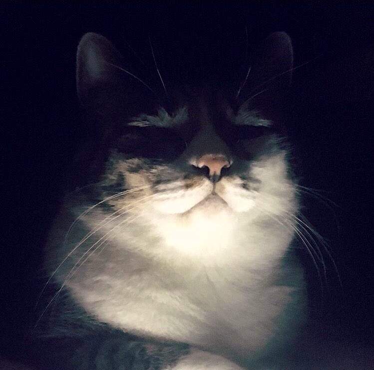 ▼半夜停電時,一打開手電筒被自己的貓咪嚇到。