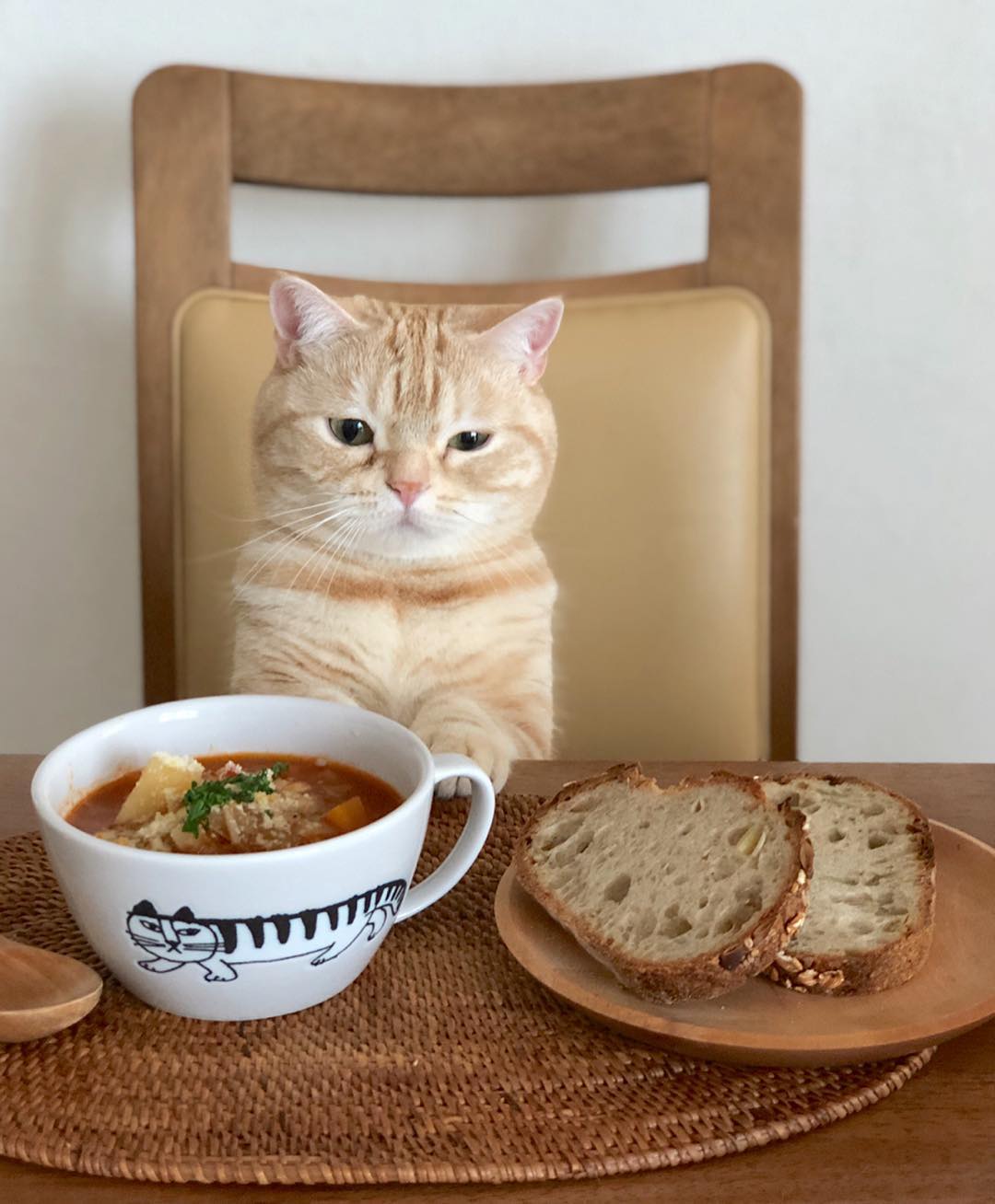 2019年02月27日日本IG網友「shippona77」家有一隻可愛的橘喵,叫「茶太郎」。茶太郎長得圓滾滾的,這裡說的可不僅僅是牠的身材,牠的臉、眼睛都圓圓的,看起來超可愛。與其他橘喵一樣,茶太郎是個標準吃貨,每次桌上有食物,牠都會瞬間出現,那副想吃又努力克制的模樣讓牠紅遍網路。