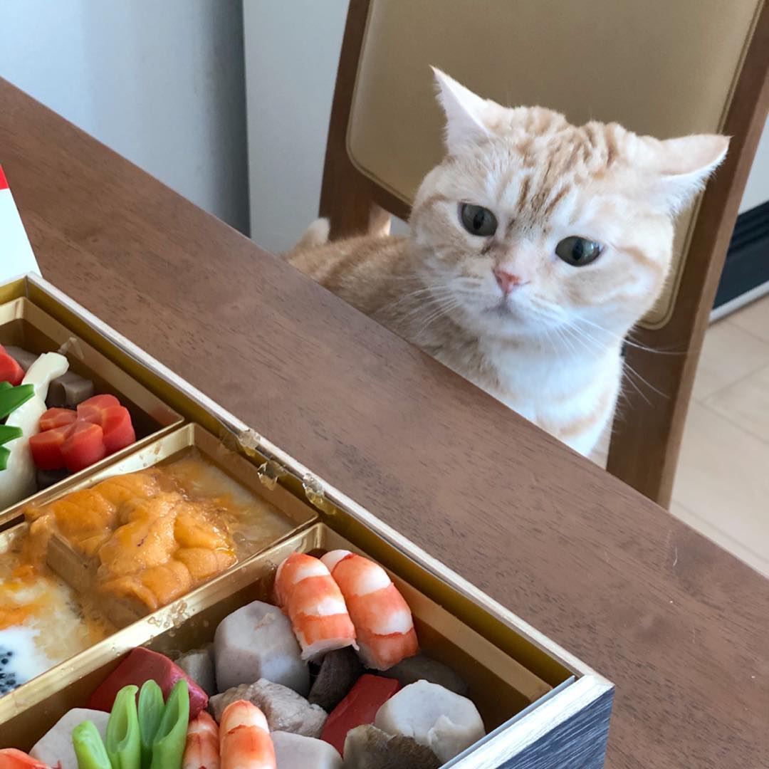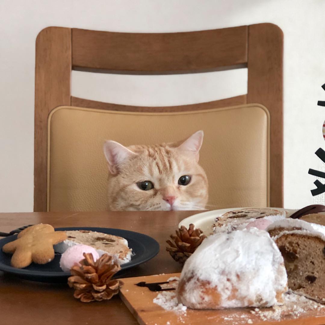 ▼貓咪吃人類的食物對身體不好,所以主人一般不讓茶太郎吃桌子上的美食。牠哀怨的眼神超級萌。