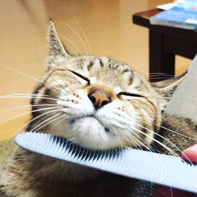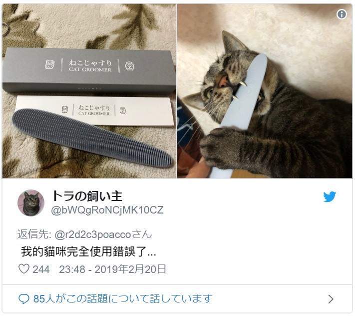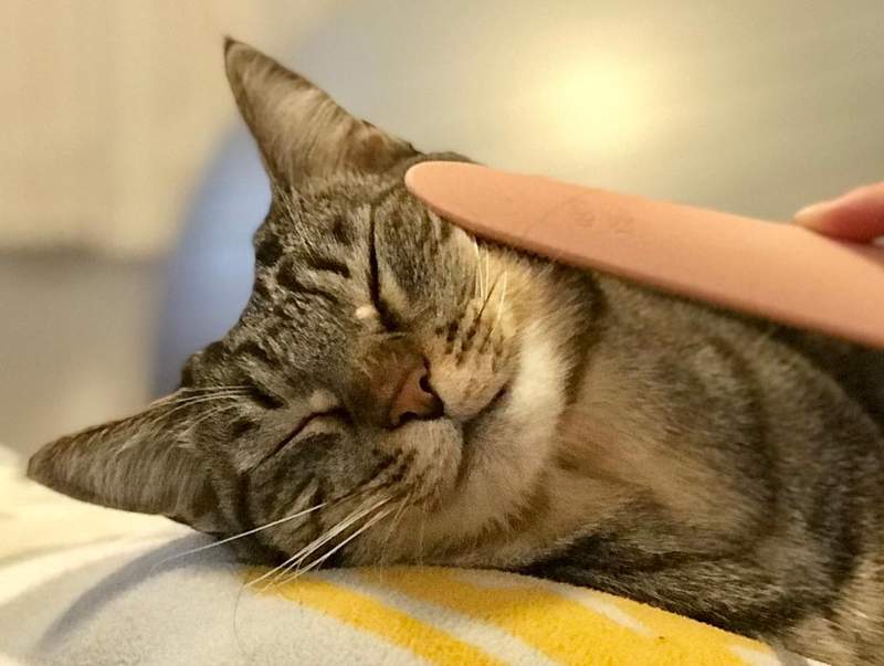 ▼網友在推特上大讚這「貓舌梳」,看看這貓咪滿意的樣子,好像真的很舒服啊!