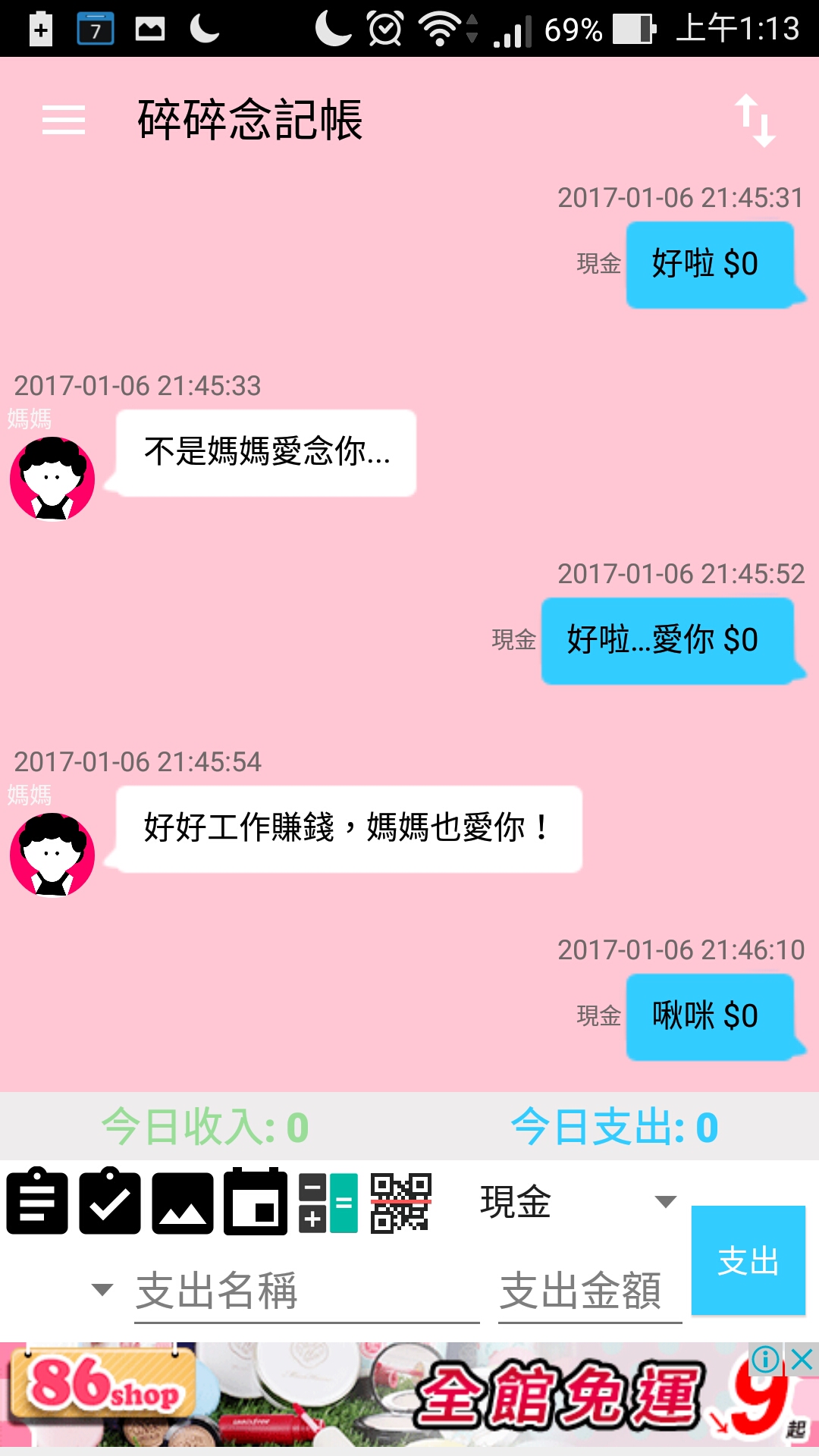 ▼在App當中也提供了多樣化的回應方式,包括:「愛碎碎念的爸爸」、「愛碎碎念的柔情爸爸」、「愛碎碎念的媽媽」、「愛碎碎念的柔情媽媽」。選擇人物性格之後只要在「支出」欄位輸入想說的話,並且寫上花費的數字,就能夠進行對話記帳了!