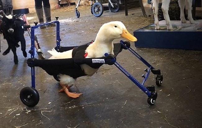 2019年03月01日世界上有很多肢障的動物,因為各種各樣的原因,牠們失去了自由活動的能力,如果沒人幫助,牠們很難活下去。美國新澤西州安那代爾(Annandale)的動物收容所中有一隻叫Merlin的小鴨子,Merlin的一隻腳先天畸形,收容所就為牠定製了一台特別的輪椅。
