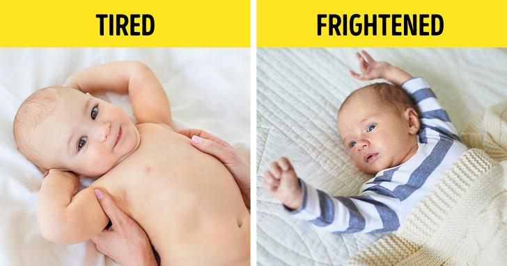 5)嗜睡的哭泣:當寶寶很想睡覺卻無法入睡時,會發出類似被冒犯、埋怨的哭泣聲,他們也會不斷打哈欠、揉眼睛。