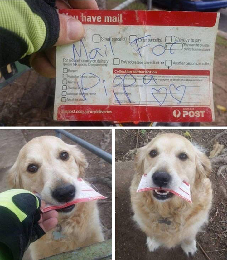 ▼「這隻狗狗 Pippa 每天都會出來幫主人收信,今天沒有信件給牠,於是我寫了一封『給狗狗的信』讓牠帶回去。」