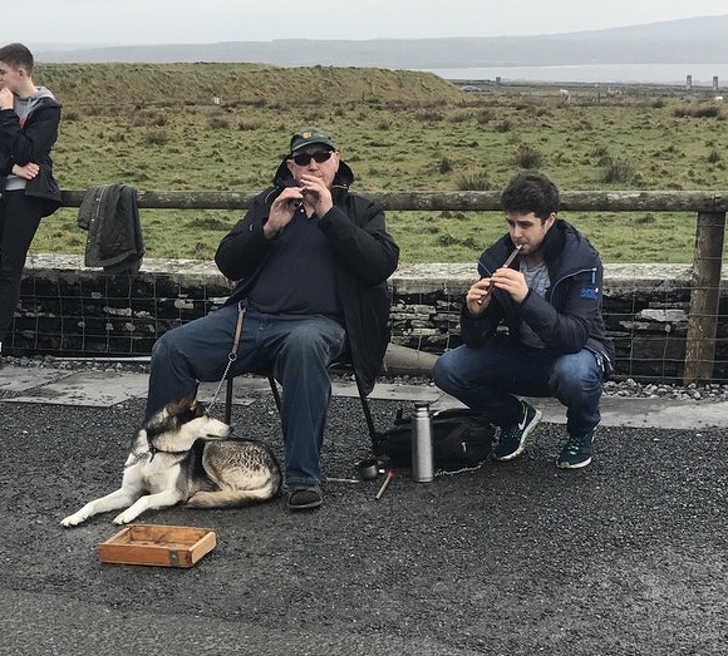 ▼這名視障人士在路旁吹笛子表演時,一名年輕人突然也掏出笛子加入他的表演,這讓他賺得了更多的打賞。