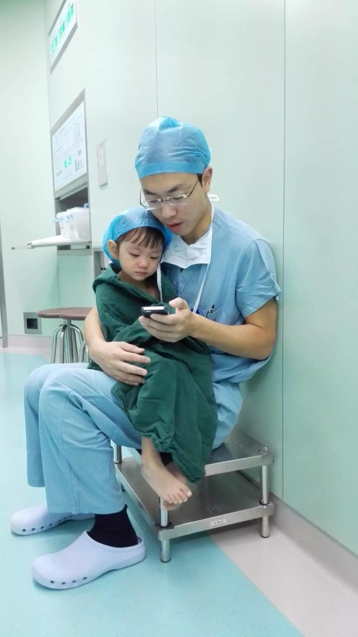▼在為2歲女童進行手術之前,醫師讓她看卡通放鬆心情。