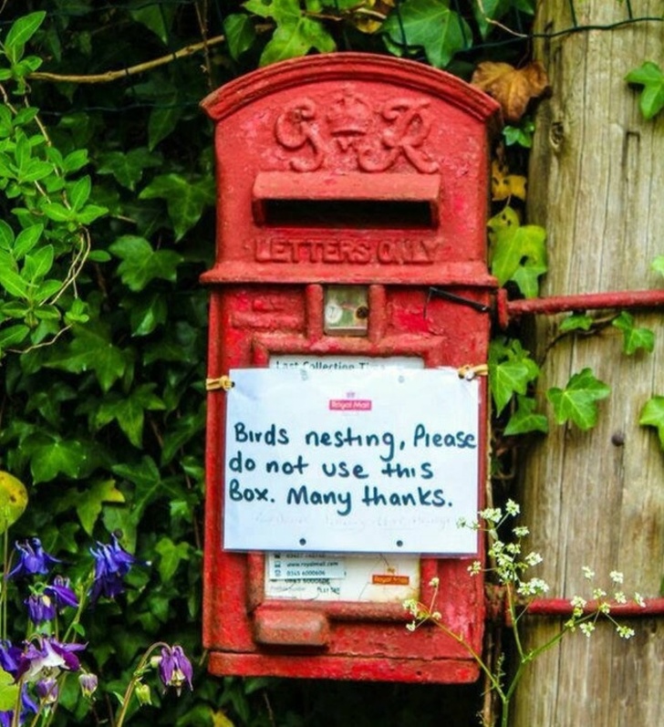 ▼信箱上的字條寫著:「裡面是鳥兒的窩,請不要將信件投進裡面,非常感謝。」