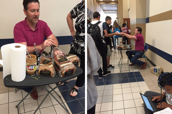 ▼貼心的老師擔心學生沒吃早餐,在考場外免費派發自製的果醬吐司。