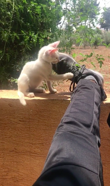▼Safa沒有趕走小貓,他想:「如果牠身上有跳蚤,我身上肯定已經有了,所以沒必要嫌棄。」他小心翼翼拿出手機,與這個可愛的小傢伙拍了一張合照。小貓醒來後沒有逃跑,而是跳下去朝著他喵喵叫,好像認定他就是自己的主人。Safa欣然接受,決定收編牠。