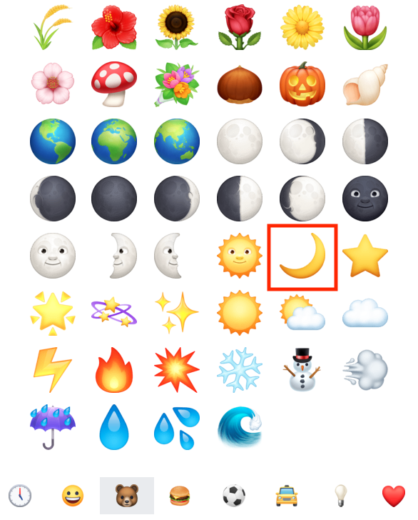 ▼想用擁有新的介面功能,首先需要進行更新之外,開啟一個對話窗,並傳送月亮的表情符號,但這裡要注意的是,月亮符號僅有以下圈起來的這個圖示才能通關哦!其他的🌝🌛🌜🌚🌕🌖🌗🌘🌑🌒🌓🌔和「月亮」兩個字也不行哦!