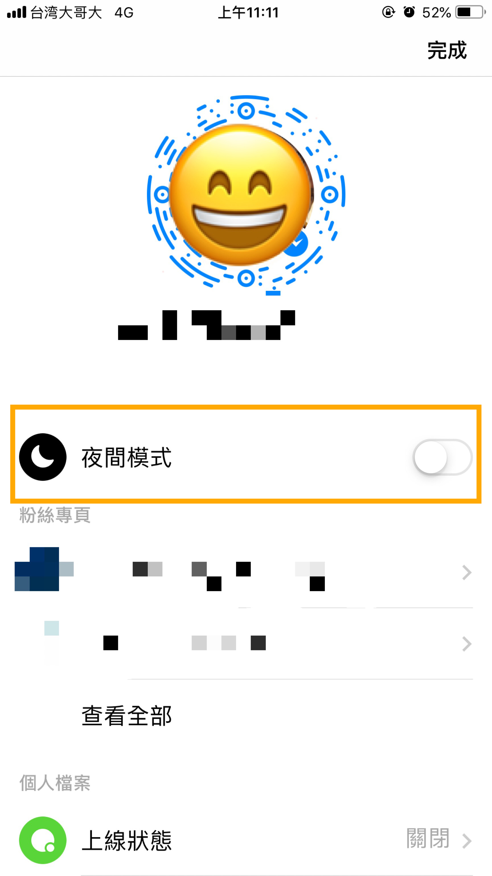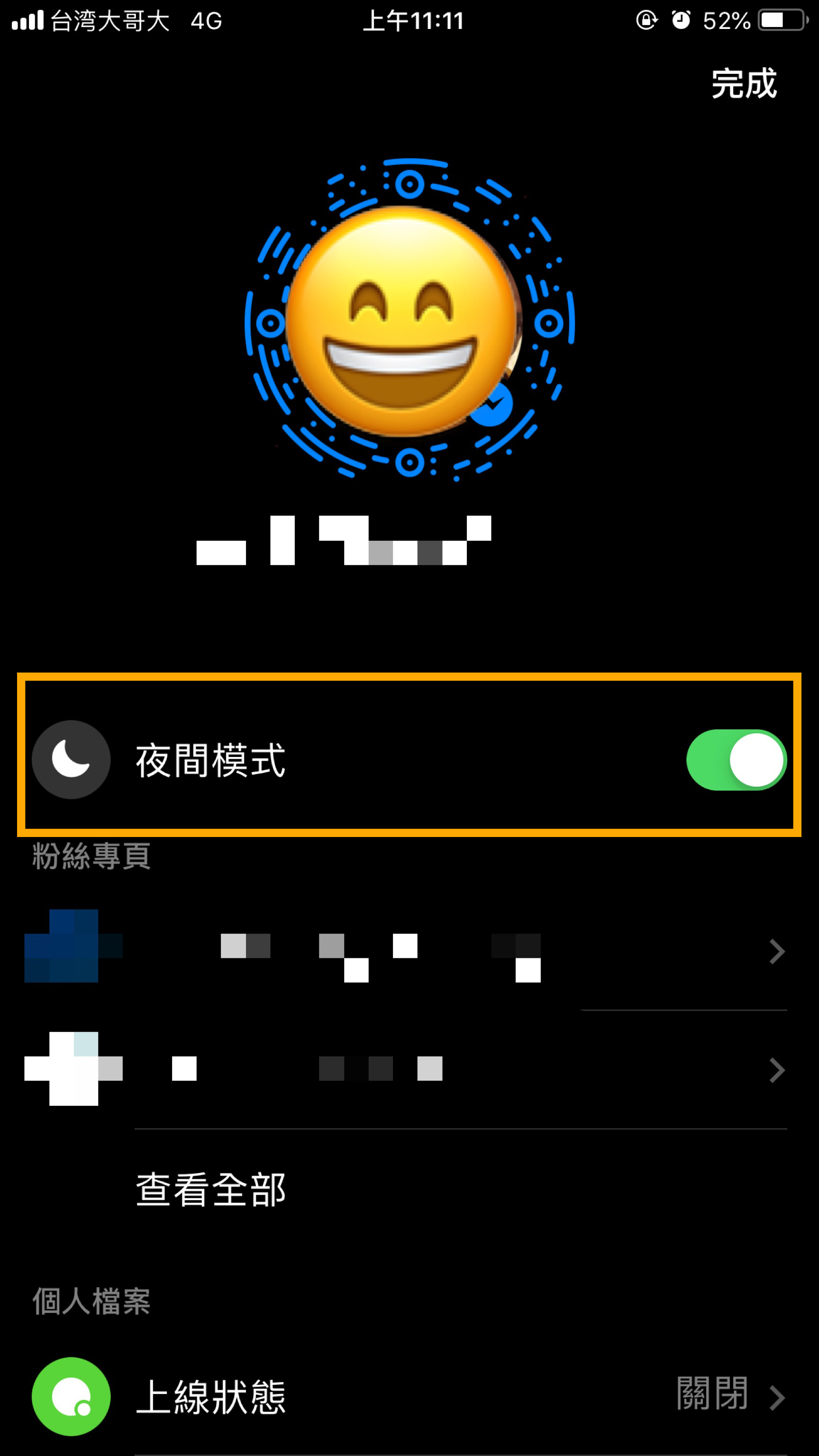 ▼接著進入設定頁面,可以看見多了一個夜間模式的選項,如果沒有此選項的話,就把App關閉重新開啟。