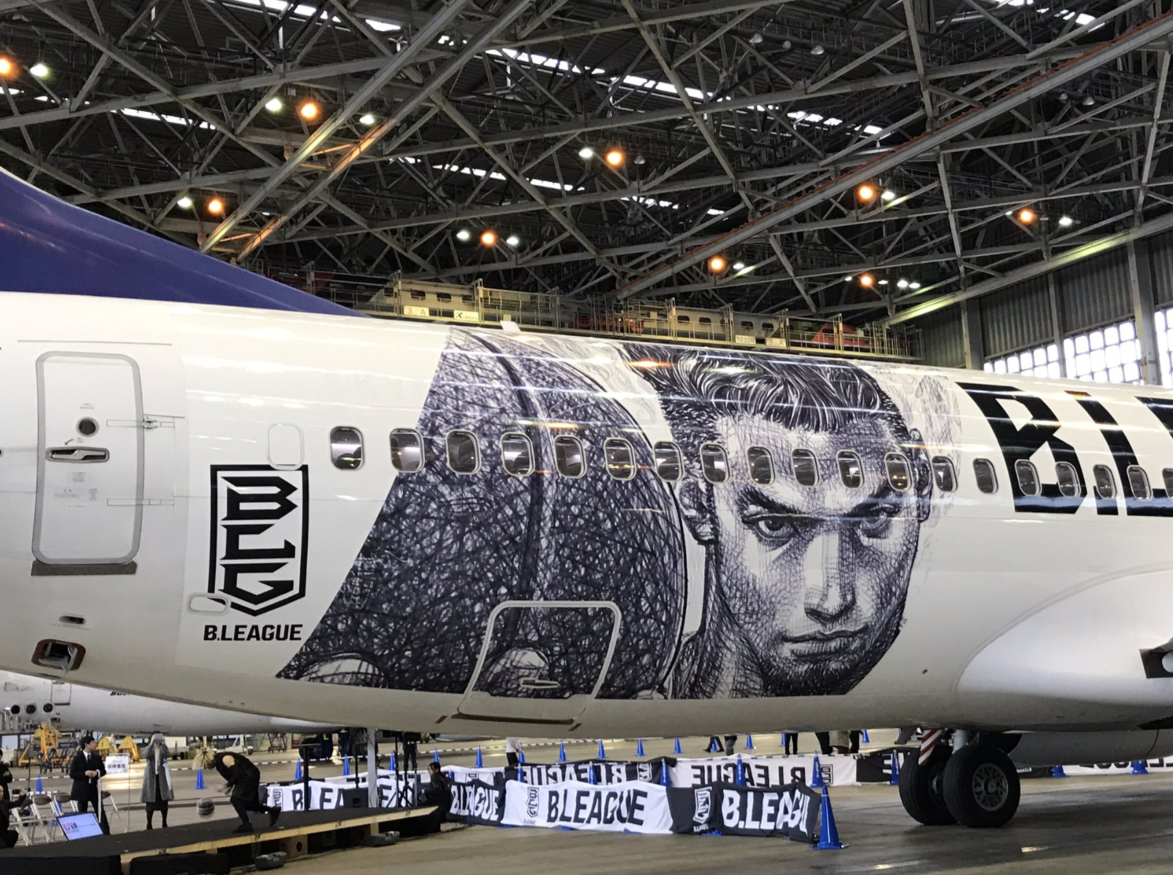 井上雄彦さんイラストのスカイマーク特別塗装機、「B.LEAGUE JET」が初めて公開されました!#Bリーグ #バスケ #Bフェス pic.twitter.com/X19mQWGVJy
