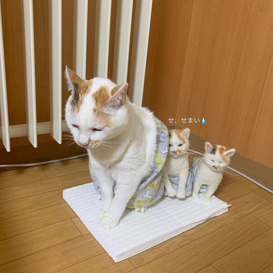 ▼其實那兩隻小貓咪是用羊毛氈做的。主人很愛Maru,又有一雙巧手,就以牠為範本,做了一隻和牠一模一樣的羊毛氈玩偶。