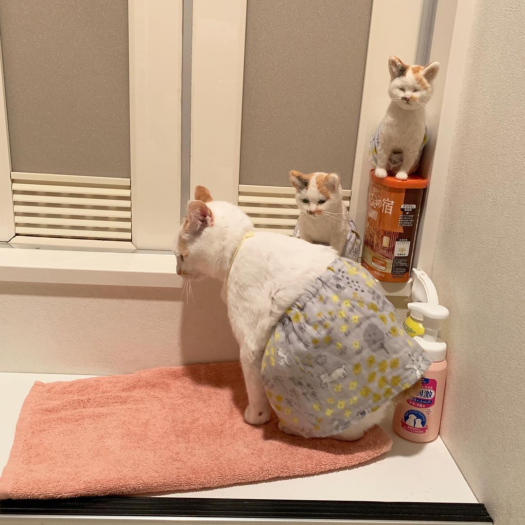 巧手媽為貓貓做羊毛氈分身 喵皇「認真帶孩子」:我有2個跟班啦~