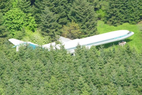 ▼69歲的老爺爺布魯斯(Bruce Campbell)在20前,從希臘的航空公司花了10萬元美金(約台幣310萬元),買進了一架波音727噴射客機,並砸了300萬元僱人將這架波音727噴射客機拖進希爾斯伯勒森林中所擁有的10英畝地,甚至還替飛機加裝了一些傢俱,把這飛機打造成夢幻住宅。