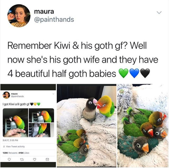 ▼我幫鸚鵡 Kiwi 找了一個哥德風的女友。