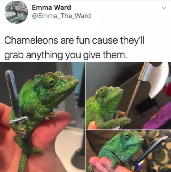 ▼變色龍有趣的地方,就是不管你給牠什麼,牠都會抓住。
